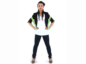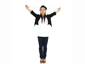 简称:抖肩运动 http://player.youku.com/player.php/sid/XMTY5MjE1ODg0/v.swf准备姿势:把健康带从身后放在上臂中部,两手插腰,两腿并拢,两眼平视前方。脚上基本运动步伐:侧并步。手上动作:两肩同时往前或往后抖肩,尽量把胸腔打开,有节奏地吸气和吐气。